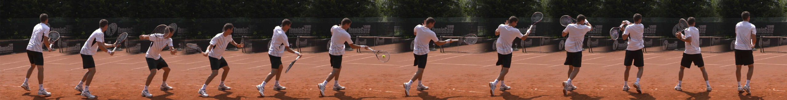 The forehand from the lateral position occurs in competition tennis in special situations. One of these situations, for example, is a ball that flies relatively centrally towards the player.